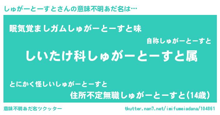 | ポケモン風あだ名 | 『シュキング』『シックウザ』 |