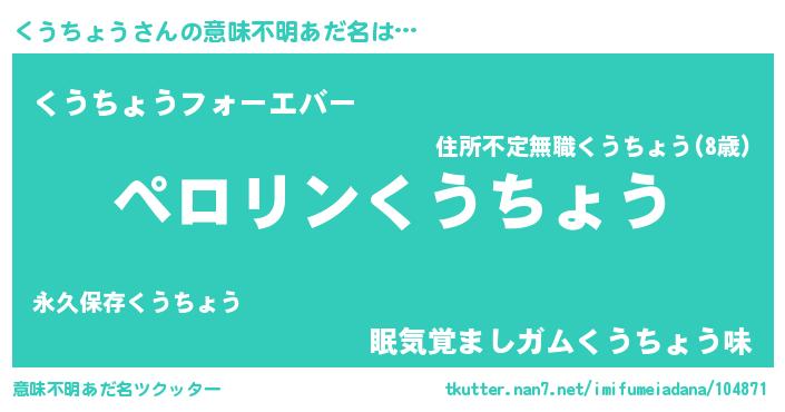 | 男性向けラノベタイトル風あだ名 | 『くうちょうの憂鬱』 |