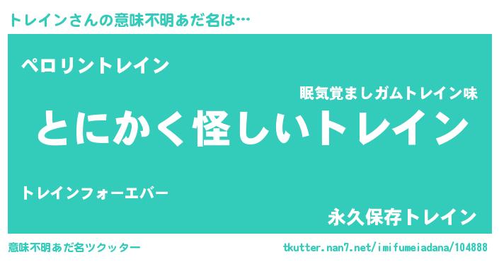 | 女子向けラノベタイトル風あだ名 | 『トレイン様がみてる』『トレイン恋絵巻』 |