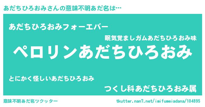 | 男性向けラノベタイトル風あだ名 | 『あだちひろおみの憂鬱』 |