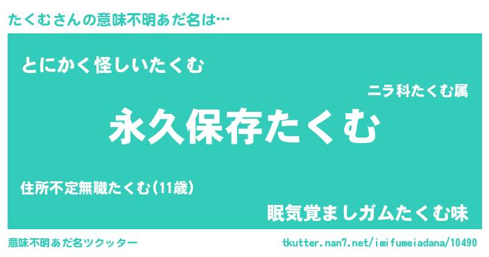 | 女子向けラノベタイトル風あだ名 | 『たくむの契約王妃』『死神たくむの再婚』 |