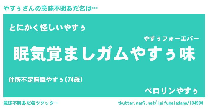 | 欧米人風あだ名 | 『ダニエルやすぅ』『ウサインやすぅ』 |