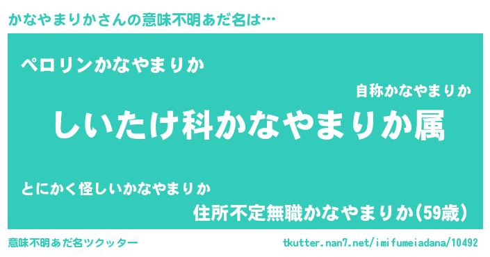 | 胡散臭い通販商品みたいなあだ名 | 『必ず成功する霊験あらたかなお札…その名も「かなやまりか」』 |