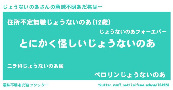 | 男性向けラノベタイトル風あだ名 | 『じょうないのあの嫁は女の子じゃないと思った?』 |
