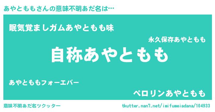 | 男性向けラノベタイトル風あだ名 | 『Re:あやとももから始める異世界生活』 |