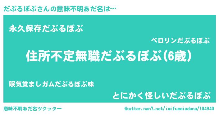 | 男性向けラノベタイトル風あだ名 | 『はたらくだぶるぼぶさま!』 |