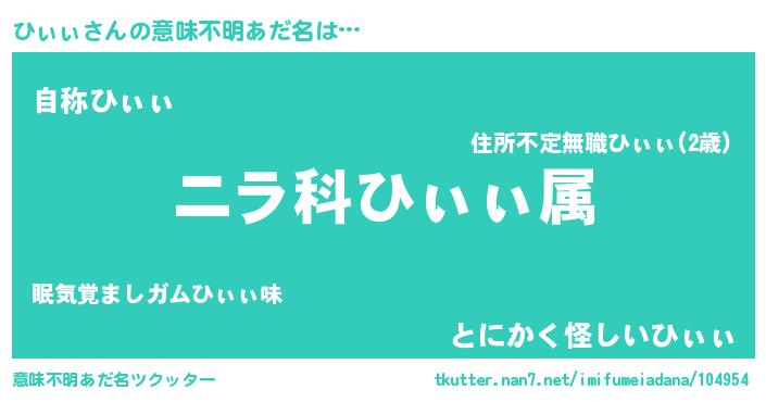 | ヘコむあだ名 | 『ひぃぷりん』『ひぃぃ(小並感)』 |