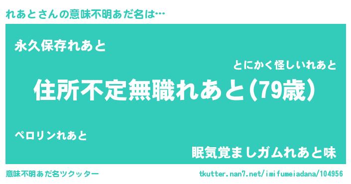 | 男性向けラノベタイトル風あだ名 | 『この素晴らしい世界にれあとを!』 |