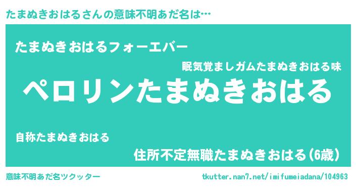 | 欧米人風あだ名 | 『マイケルたまぬきおはる』 |