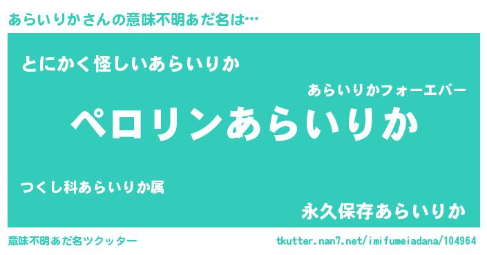 | 胡散臭い通販商品みたいなあだ名 | 『億万長者になれる水晶球…その名も「あらいりか」』 |