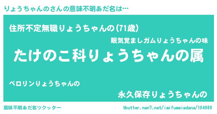 | 男性向けラノベタイトル風あだ名 | 『冴えないりょうちゃんのの育てかた』 |