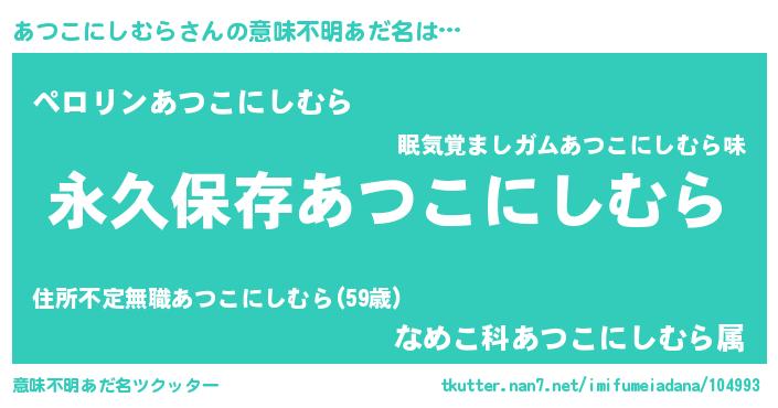 | 料理風あだ名 | 『あつこにしむらの炊き込みご飯』 |