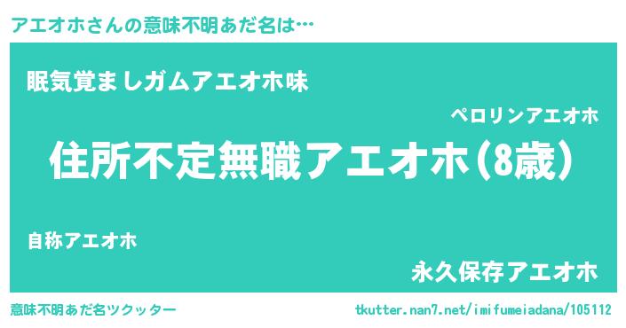 | 男性向けラノベタイトル風あだ名 | 『この素晴らしい世界にアエオホを!』 |