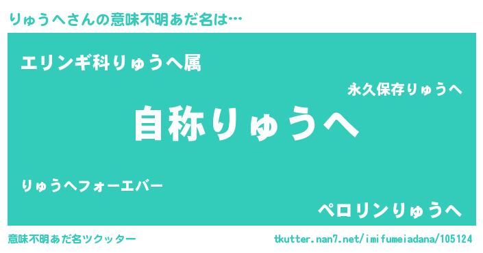 | 欧米人風あだ名 | 『りゅうへ・ステッグマイヤー』 |