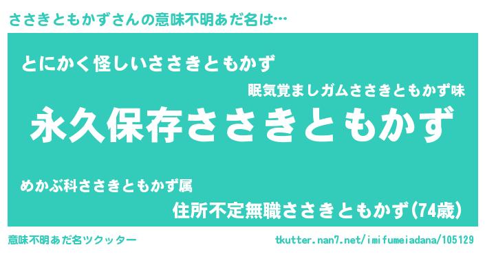 | ヘコむあだ名 | 『ささきともかず(笑)』『ささぷりん』 |