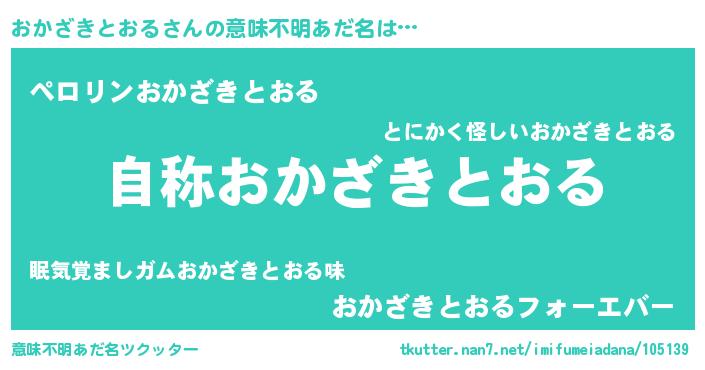 | 欧米人風あだ名 | 『ケンブリッジおかざきとおる』 |