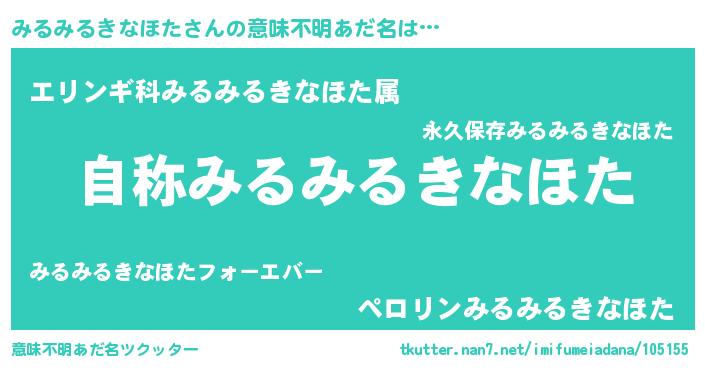 | ヒーロー風カッコイイあだ名 | 『究極戦士ミルミルキナホタ』 |