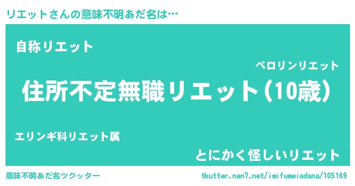 | ヒーロー風カッコイイあだ名 | 『仮面リエダー』『究極戦士リエット』 |