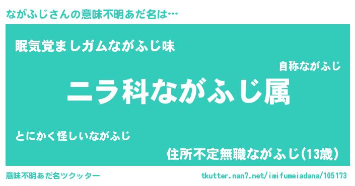 | 男性向けラノベタイトル風あだ名 | 『ながふじ~年齢イコール彼女いない歴の魔法使い~』 |