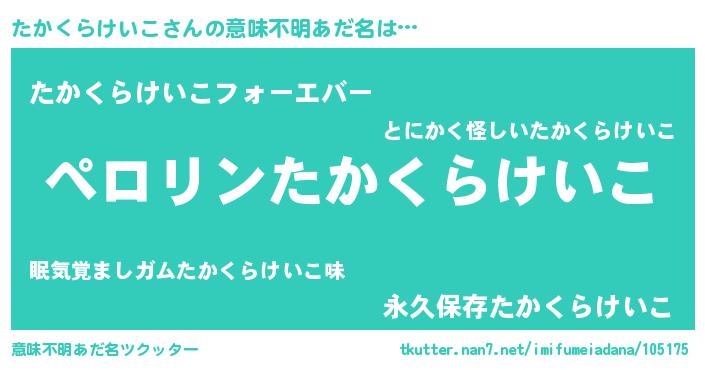 | ヒーロー風カッコイイあだ名 | 『スーパータカクラケイコ』 |