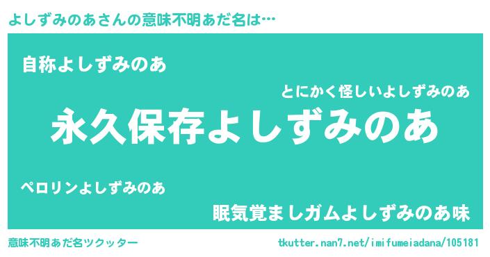 | 胡散臭い通販商品みたいなあだ名 | 『絶対に幸福をもたらす水素水…その名も「よしずみのあ」』 |