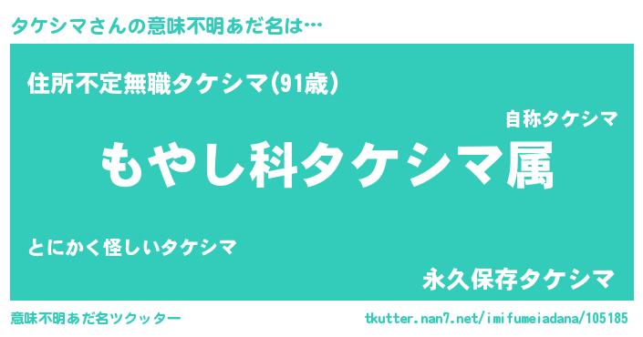 | ヘコむあだ名 | 『タケシマ(震え声)』『タケぷりん』 |