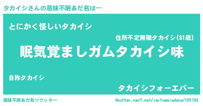 | ピコ太郎風あだ名 | 『タタ太郎』『タカ八郎』『ピタ八郎』 |