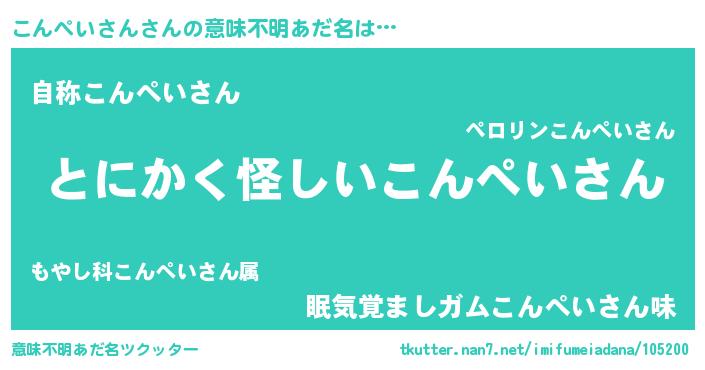 | ポケモン風あだ名 | 『コンゴンZ』『ヒコンペイサン』 |