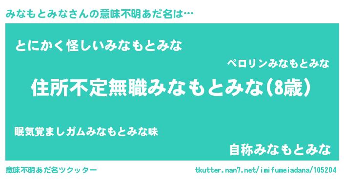 | 欧米人風あだ名 | 『ダレノガレみなもとみな』 |