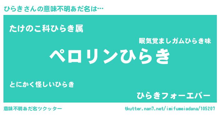 | ヒーロー風カッコイイあだ名 | 『スーパーヒラキ』『ウルトラひらきマン』 |