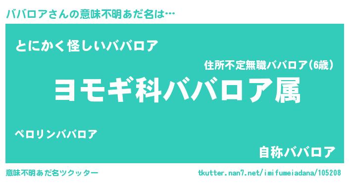 | ヒーロー風カッコイイあだ名 | 『天弓騎士ババ』『超時空戦士ババロア』 |