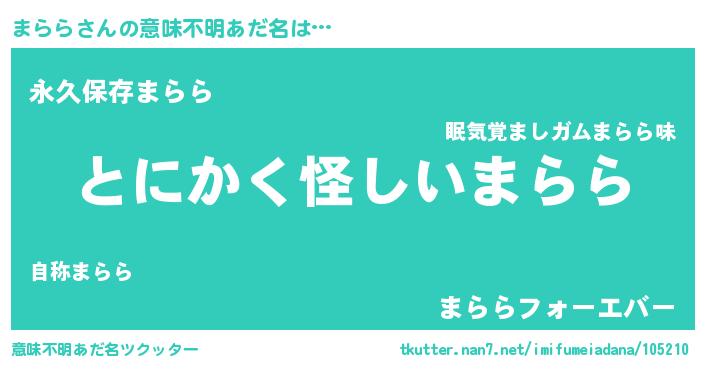 | ヘコむあだ名 | 『まらっぺ』『まらら(苦笑)』 |