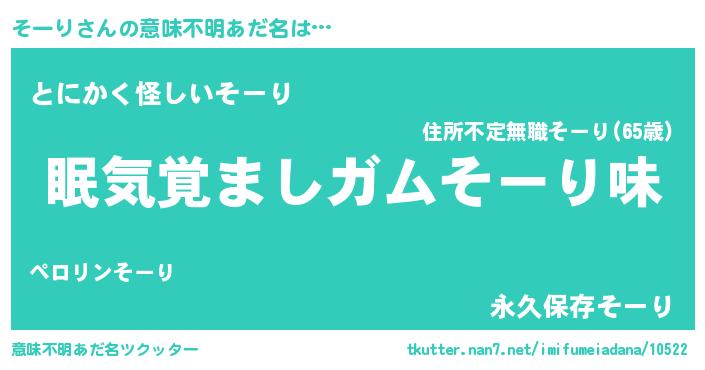 | 自動車の名前っぽいあだ名 | 『ランソーギーニ』『ソンR』『ソント』 |