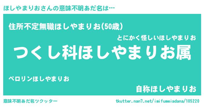 | 欧米人風あだ名 | 『ほしやまりお・ステッグマイヤー』 |