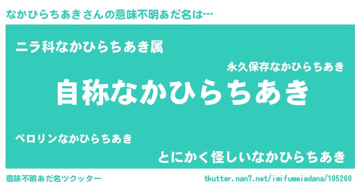 | 肩書あだ名 | 『なかひらちあき閣下』 |