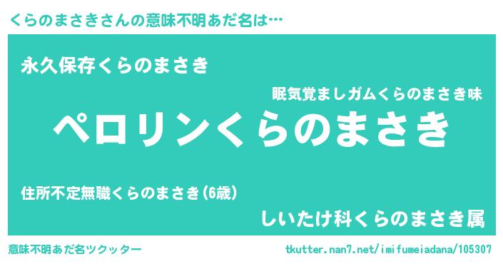 | 男性向けラノベタイトル風あだ名 | 『くらのまさきに滅ぼされるだけの簡単なお仕事です』 |