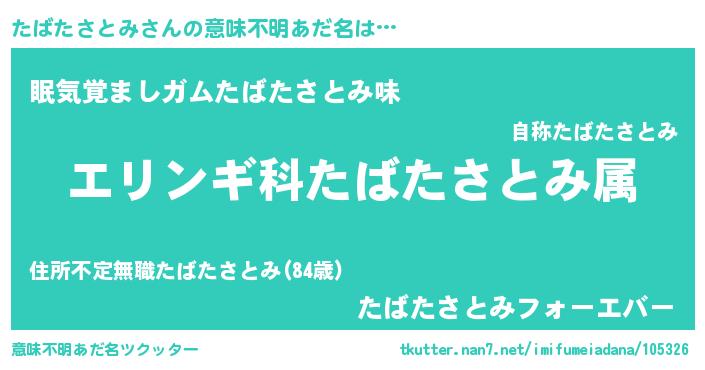 | 男性向けラノベタイトル風あだ名 | 『タバタサトミスレイヤー』 |