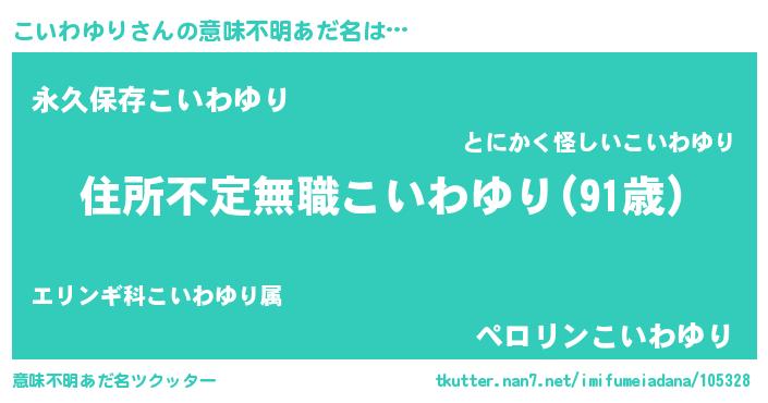 | ヒーロー風カッコイイあだ名 | 『仮面コイダー』『ネオコイワユリ』 |