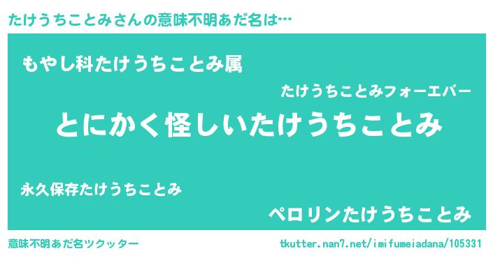 | 女子向けラノベタイトル風あだ名 | 『たけうちことみの卵を拾いまして』 |