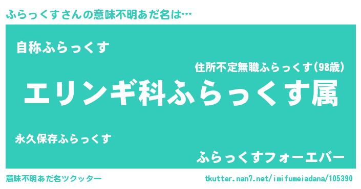 | 胡散臭い通販商品みたいなあだ名 | 『ガンによく効く高麗人参…その名も「ふらっくす」』 |