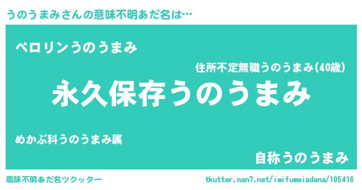 | 欧米人風あだ名 | 『アンジェラ・うのうまみ』 |