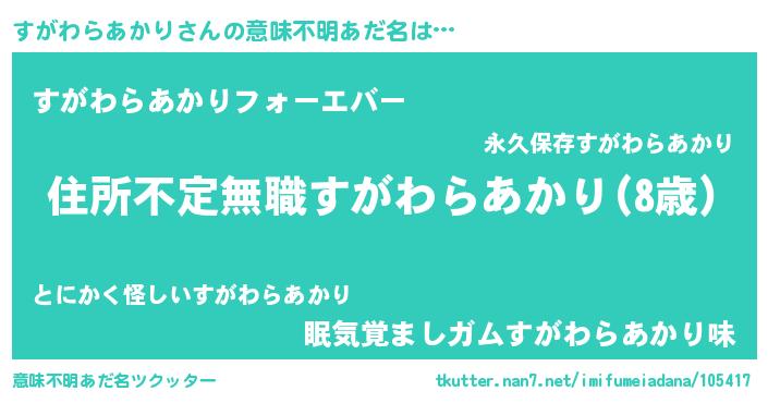 | 欧米人風あだ名 | 『ダレノガレすがわらあかり』 |