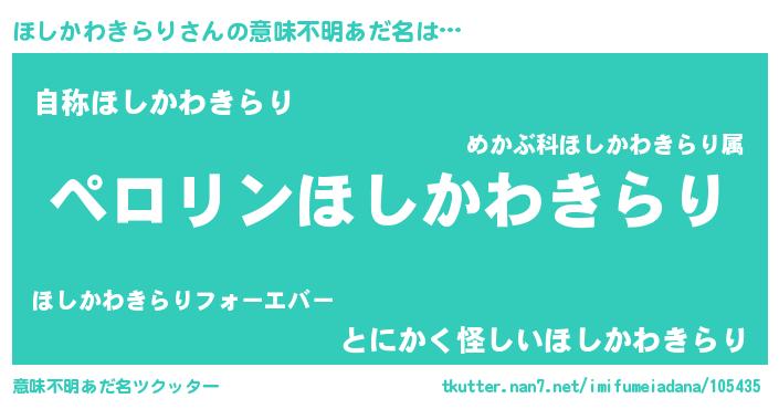 | 胡散臭い通販商品みたいなあだ名 | 『必ず成功するブレスレット…その名も「ほしかわきらり」』 |
