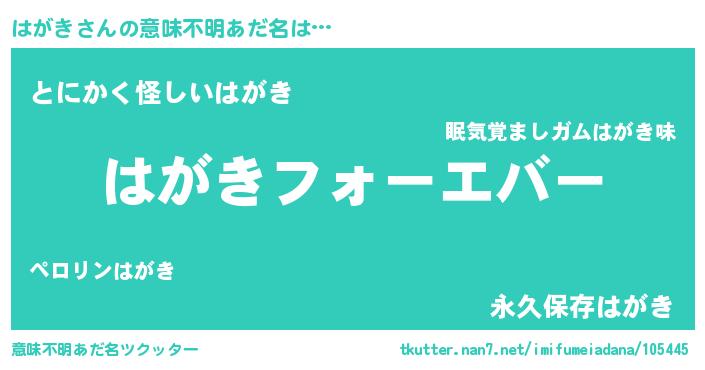 | ポケモン風あだ名 | 『ハガキダネ』『ヒハガキ』 |