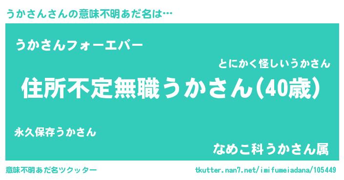 | ヒーロー風カッコイイあだ名 | 『仮面ウカダー』『ウルトラうかさんマン』 |