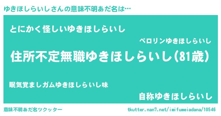 | 男性向けラノベタイトル風あだ名 | 『はたらくゆきほしらいしさま!』 |