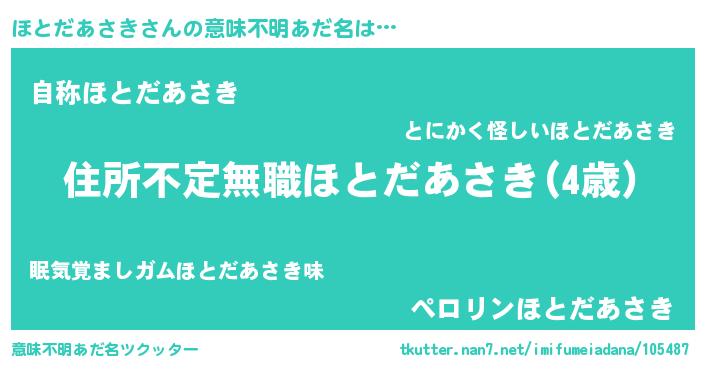 | 伝説のあだ名 | 『不死鳥の竜騎士ほとだあさき』 |