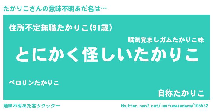 | 欧米人風あだ名 | 『アンジェラ・たかりこ』 |