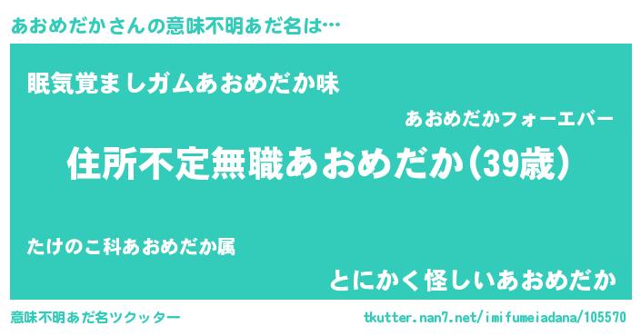 | ヒーロー風カッコイイあだ名 | 『仮面アオダー』『友情の使者あおめだか』 |