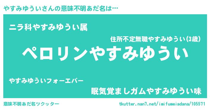 | 胡散臭い通販商品みたいなあだ名 | 『億万長者になれるブレスレット…その名も「やすみゆうい」』 |